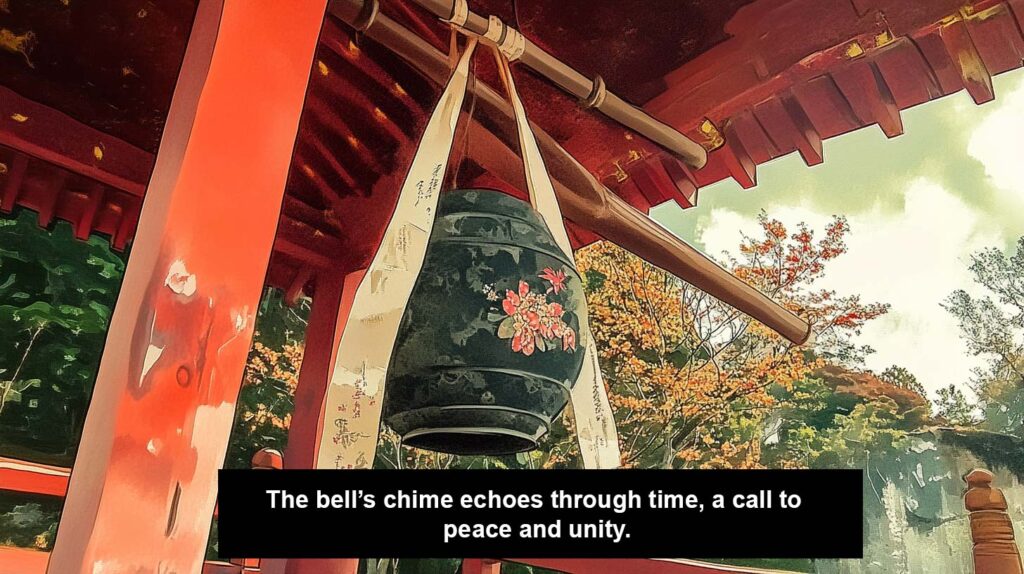 Narrator: “The bell’s chime echoes through time, a call to peace and unity.”