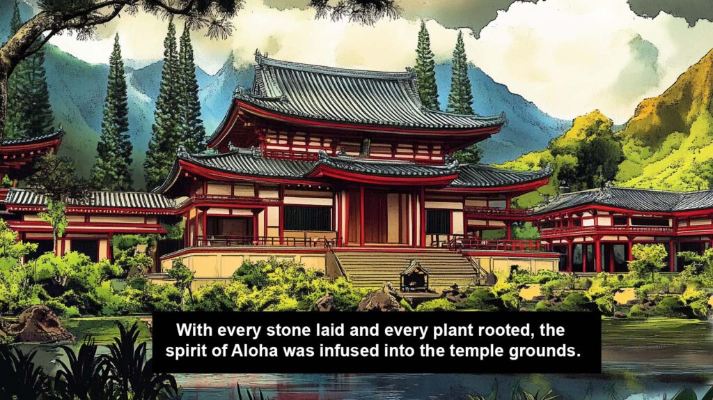 Narrator: “With every stone laid and every plant rooted, the spirit of Aloha was infused into the temple grounds.”